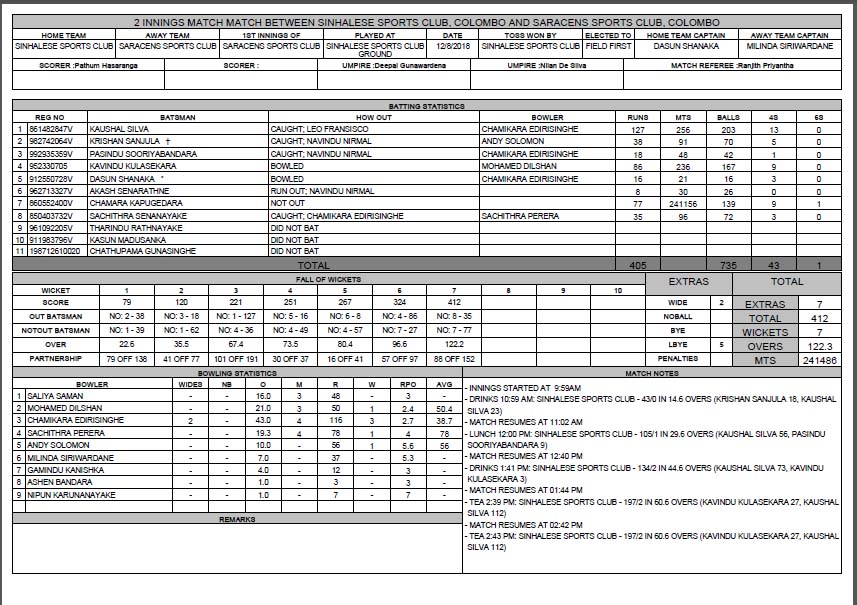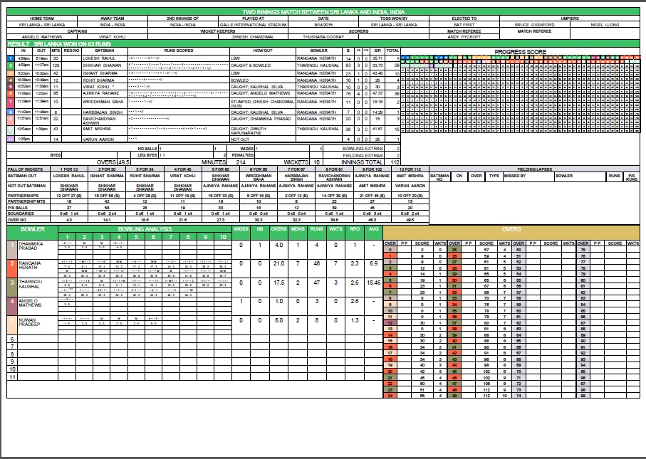 Produce conventional scoresheet and summary sheet