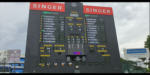 Singhalese Sports club ,,, an international test match venue,,, is equipped with a fully automated electronic/digital scoreboard. More ...